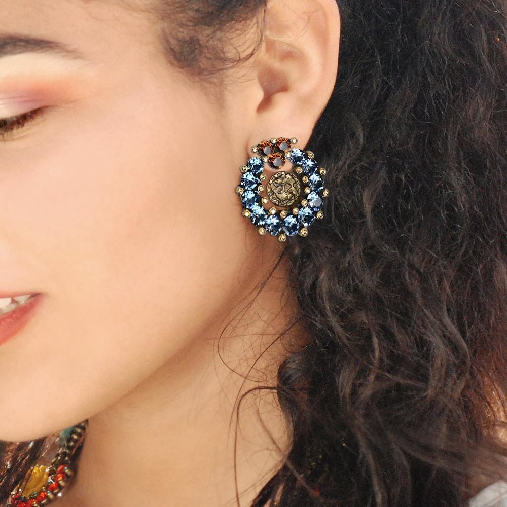 Sapphire Crystal Sun Sign Zodiac Statement Earrings - Sweet Romance Wholesale Sapphire Crystal Sun Sign Zodiac Statement Earrings - Sweet Romance Wholesale